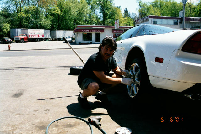 Miled is telling the story of how he and Tony decided to do this for me. He tells of contacting Tracy Townsend who locates the wheels in a day, has then shipped overnight to Miled. Miled orders tires and has then shipped overnight. As he continues with his story Tony is snapping pictures (I am in a rare humble state and they want it on film) and I find my thoughts drifting off to the complexity of getting this accomplished in such a short time and the expenses involved. I still can't believe what I'm seeing.