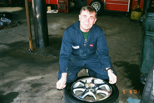 Miled is telling the story of how he and Tony decided to do this for me. He tells of contacting Tracy Townsend who locates the wheels in a day, has then shipped overnight to Miled. Miled orders tires and has then shipped overnight. As he continues with his story Tony is snapping pictures (I am in a rare humble state and they want it on film) and I find my thoughts drifting off to the complexity of getting this accomplished in such a short time and the expenses involved. I still can't believe what I'm seeing.